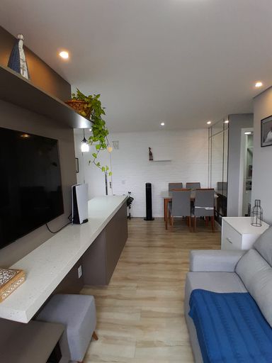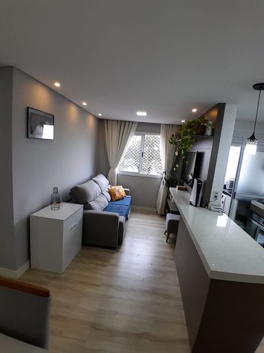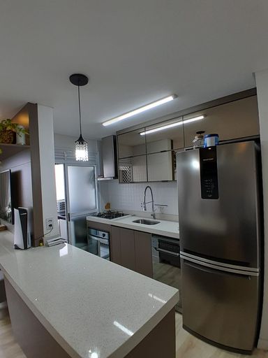 Imóvel composto por: 2 Dormitórios, Sala, Cozinha Americana, Área de serviço, 1 banheiro, 1 vaga de garagem individual e coberta, inclusive a vaga tem um número de matrícula ou seja vaga exclusiva do Apartamento! Irá ficar no imóvel, todos os Planejados, Cooktop, forno e coifa!